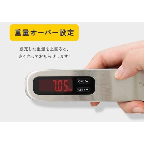 ラゲッジスケールを使えば、重い荷物も吊り下げるだけで、かんたんに重量チェックができます。