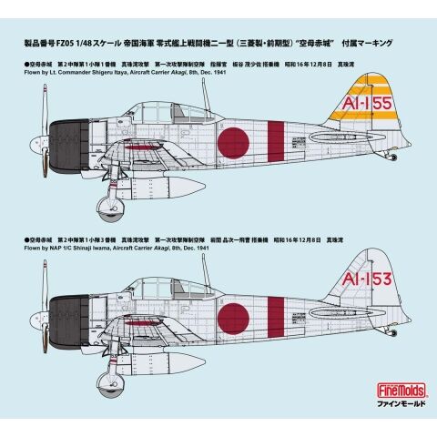 本キットではこの真珠湾攻撃に第一次攻撃隊として参加した、空母赤城戦闘機隊所属機である板谷茂少佐(真珠湾攻撃 第一次攻撃隊/制空隊指揮官)機と、列機を務めた岩間品次一飛曹機をモデル化します。