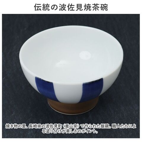 焼き物の里、長崎県の波佐見町(重山窯)で作られた飯碗。職人たちによる塗り分けが美しさのポイント。