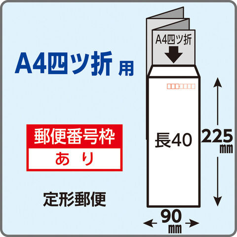 気品を感じさせる上品な青白さ、筆記特性に優れた長40封筒。A4書類を四ツ折(210×75mm)で封入できます。