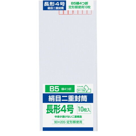 キングコーポレーション 長形4号 10枚 絹目二重封筒 B5横4つ折 テープ付 N4NJ10KN 【返品種別A】