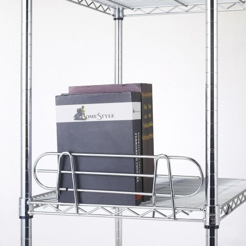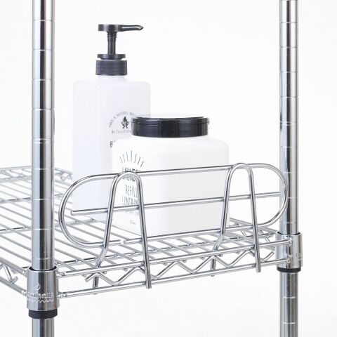 ◆スチールシェルフ(棚)の側面に差し込んで取り付ける、収納物のこぼれ防止の棚奥行35.5cm専用パーツです。