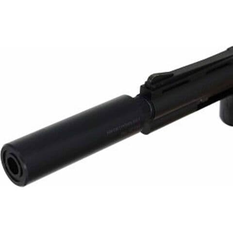 ・モデルガン用の「タイプ ・サイレンサー」。前方に放熱用のグルーブ(溝)あり、根元のローレット部がガスガンモデルからの変更だ。