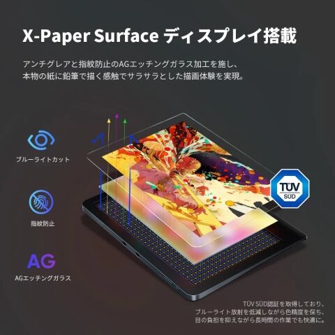 画面とディスプレイをシームレスに貼り合わせることで、ペン先とカーソルの視差を少なくし、一本一本の線を正確な位置に引く事ができます。