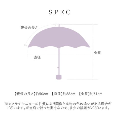 - サイズ(約):[親骨の長さ]50cm [直径]88cm [全長]51cm [収納時の長さ]25cm [収納時の幅]8cm