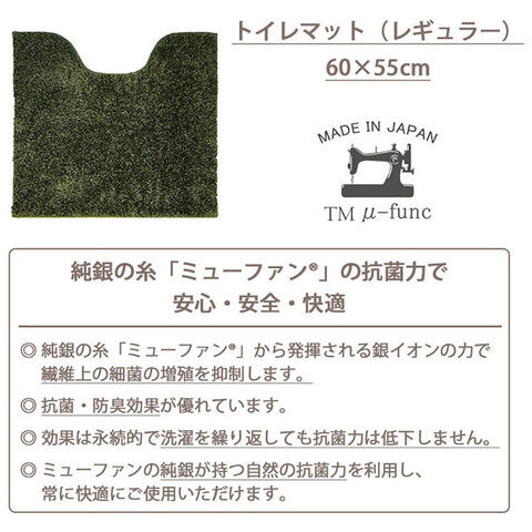 純銀の糸ミューファン(R)を織り込んだマット。銀イオンの力で繊維上の細菌の増殖を抑制。人体には安全な”銀”の持つ自然な力を活用しているので安心。