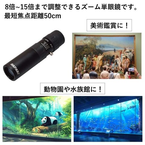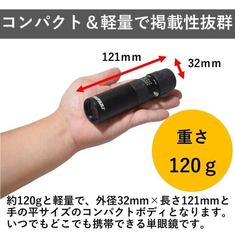 ◆至近距離から無限遠まで使える遠近両用の単眼鏡です。