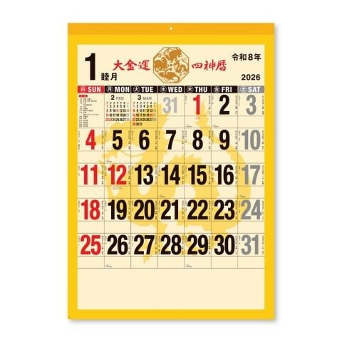 新日本カレンダー 2026年 大金運 風水四神暦 カレンダー 壁掛けカレンダー 8707 【返品種別A】