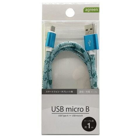 agreen 通信/充電対応 microUSBケーブル 1.0m(英字/ブルー) JCBM1003 【返品種別A】