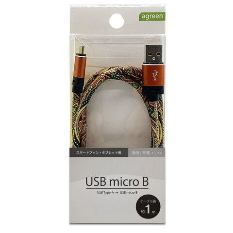 agreen 通信/充電対応 microUSBケーブル 1.0m(ペイズリー) JCBM1004 【返品種別A】