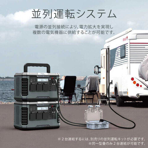 複数の家電製品に供給することを想定し、Masterは独自開発したインバーター技術を手段とし、同じ電源を並列に接続すると、電力倍増し給電できます。