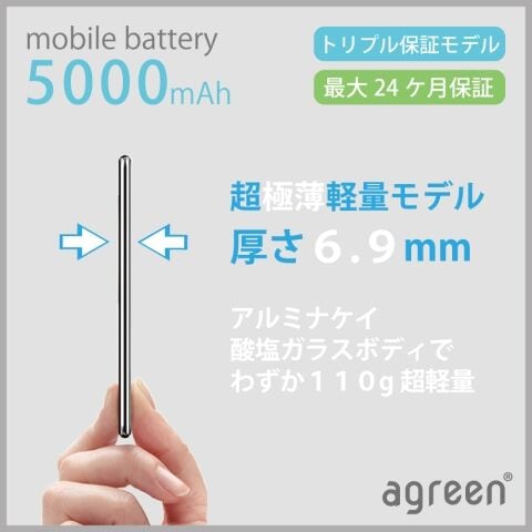 agreen|アグリーン Magsafe対応 超薄型6.9mm ケイ酸塩ガラスコーティング THN50モバイルバッテリー 5000mAh(ブラック) JMB-THN50-BK 【返品種別A】