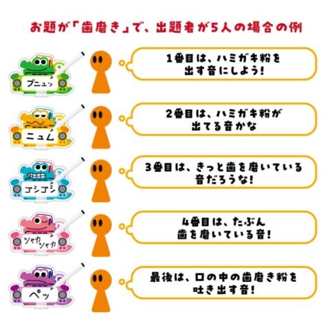 ただし、出題者1人が表現できるのは、お題となったできごとの一部分の「音」だけです。