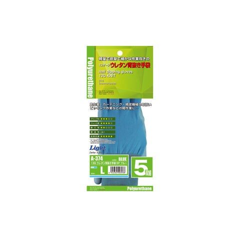 おたふく手袋 13G ウレタン背抜き手袋 5双組 L ブルー ライトシリーズ A-374 2111567A-374 【返品種別B】