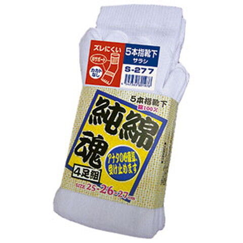 おたふく手袋 純綿魂 5本指カカトなし 4足組(サラシ・25~27cm) 2110301S-277 【返品種別B】