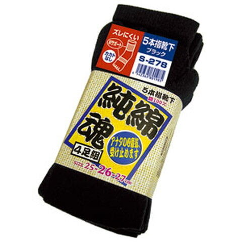 おたふく手袋 純綿魂 5本指カカトなし 4足組(ブラック・25~27cm) 2110302S-278 【返品種別B】