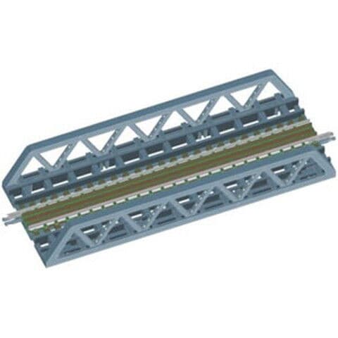 ポニートラス鉄橋は左右のトラスをつなぐ上横構が無く、主にスパンの短い小規模の橋梁に使用されます。 床に直に置いて遊べる鉄橋です(橋脚不要) 付属の橋梁台座の取付けで橋脚上でも使用可能 レール同士は簡単確実な接続 製品は単線ですが複数の組み合わせで複線以上に拡張できます トラス部分は別売りのワイドトラムレールS70-WTかS140-WTに取り付け可能 トラス部分は別売りのバスコレ走行システム道路パーツS70に取り付け可能 鉄橋床部分の横に別売りのワイドトラムレールやバスコレ走行システム道路を接続可能 別売りのコンクリートアーチ橋付属の手すりが取り付け可能 ファイントラックレール採用