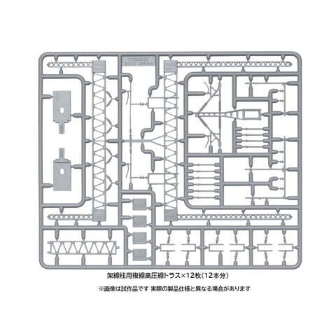 トラスは高低2種の高さどちらかを選択して組み立て トラス部分に取り付け可能なガイシが付属 レールのD.C.フィーダー差込み口に取り付け可能な架線柱固定台が付属 12本分 ※本製品のみでは遊べません