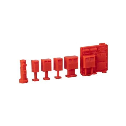 レイアウトに設置可能な郵便ポスト 郵便ポスト6種のセット 郵便ポストランナー4枚(1号丸型 1号角型 8号 10号 13号) 郵便ポストプラモニュメントランナー1枚 別売の建物や駅舎前に設置可能