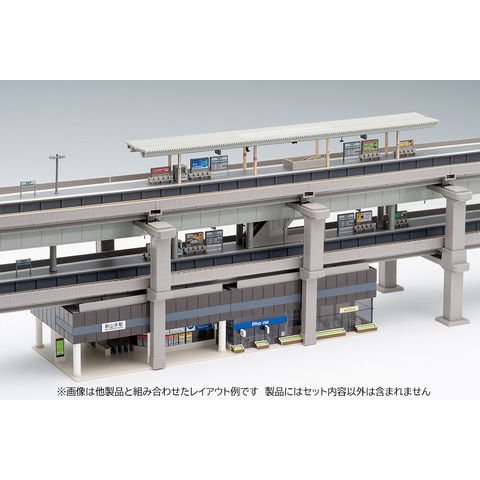 スケール:1/150(Nゲージサイズ) 付属品:高架駅用看板ランナー、高架駅用橋脚ランナー、高架駅用屋根端板、カップリング、シール