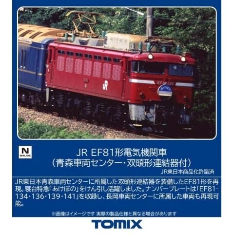 トミックスのNゲージ車両 完成品、JR EF81形電気機関車(青森車両センター・双頭形連結器付)です。