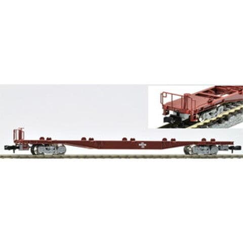 トミックスの完成品Nゲージ車両、JR貨車 コキ50000形(グレー台車・コンテナなし・テールライト付)です。