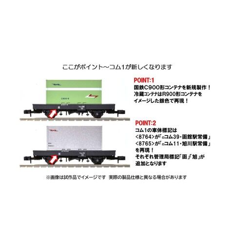 トミックスのNゲージ車両 完成品、国鉄貨車 コム1形タイプ(C900形コンテナ付)です。