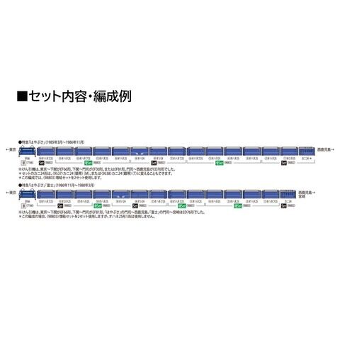 トミックスのNゲージ車両 完成品、国鉄 24系25-100形特急寝台客車(はやぶさ) 7両セットです。