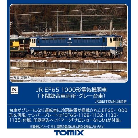 トミックスの完成品Nゲージ車両、JR EF65 1000形電気機関車(下関総合車両所・グレー台車)です。