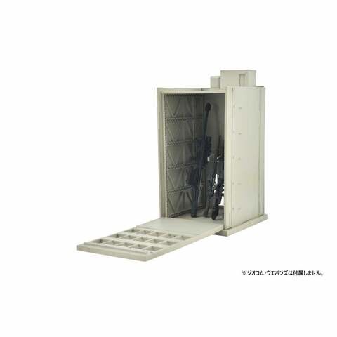 付属品のガンラックを建物内側に装着し、ジオコム・ウエポンズシリーズ(別売り) を格納可能!