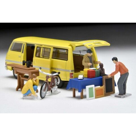 フリマをイメージしたフィギュア+小物のセット 付属の専用TLVはスライドドアとリアゲートが開閉! 26a スワップミート(別売)とも組み合わせて楽しい!