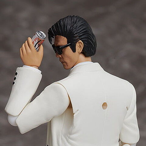 スムーズ且つキチッと決まるfigmaオリジナル関節パーツで、劇中のあらゆるシーンを再現。 3Dインクジェット印刷を駆使し、リアルなフェイスを作製。通常顔に笑顔、サングラス着用の3種のフェイスが付属。 要所に軟質素材を使う事でプロポーションを崩さず、可動域を確保。 ユージが愛用するリボルバーや缶コーヒーを用意。 警察手帳、タバコを持った手などの小物も付属。 今作では取引に使う札束、ボストンバッグに手錠パーツを新規作成。スーツとネクタイの色も変更しています。 さまざまなシーンを可能にする可動支柱付きのfigma専用台座が同梱。