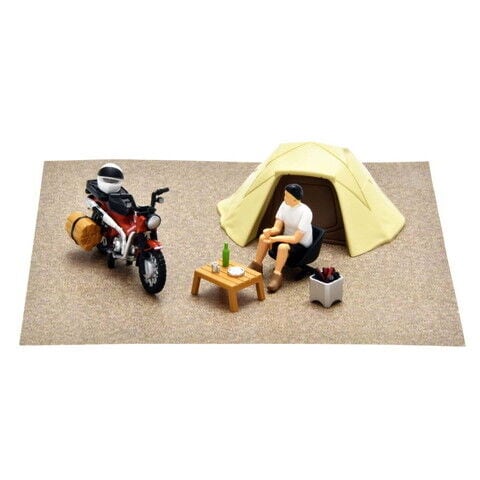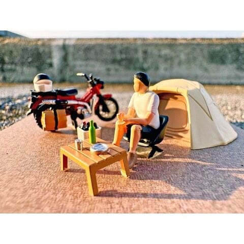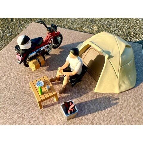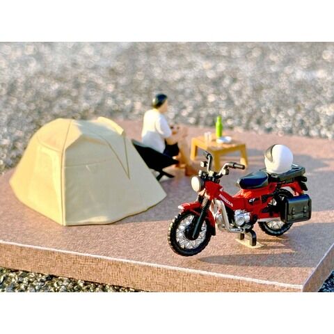 ソロキャンプを1/64スケールで! 手持ちのミニカーと組み合わせても楽しい! 専用仕様のハンターカブが付属