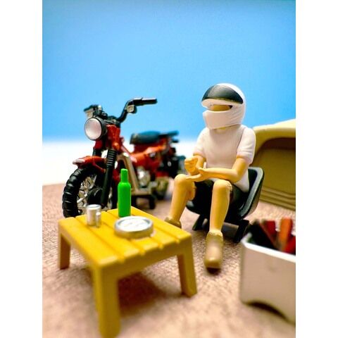 そこでトミーテックが提案するのが、「ジオコレ64 #カースナップ」です。今回はバイクで行く「ソロキャンプ」がテーマのフィギュア・小物のセットです。