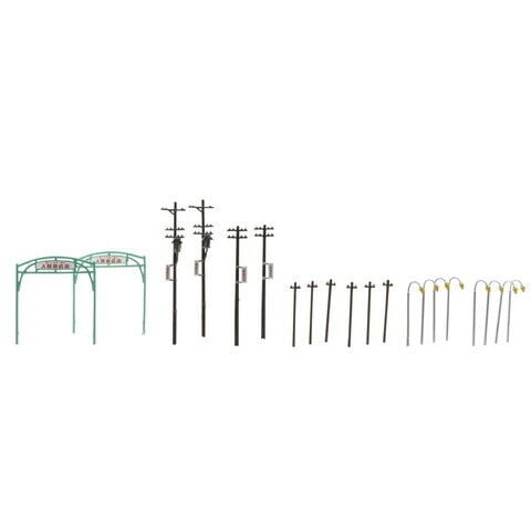 商店街入口ゲート×2、電柱(大)×2、電柱(中)×2、電柱(小)×6、外灯×8、シールのセットです。