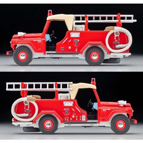 TLVでは2006年に登場した日産パトロール ポンプ消防車ですが、今回は赤色灯を新規パーツ化、銀色の防火服を身にまとった消防士のフィギュアが付属します。