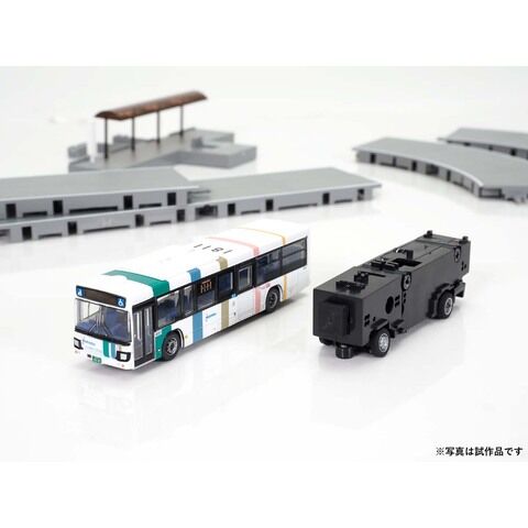 いすゞ エルガ 西日本鉄道仕様×1 専用動力ユニット(BM-04)×1 バス停ユニット×1 ※パーツはユーザー取付バス停用アプローチ道路 S70-RO(3本) 直線道路 S70-RO(5本) 曲線道路 C103-30-RO(6本)C140-30-RO0(6本) 道路・ワイドトラムレール共通ジョイント×24