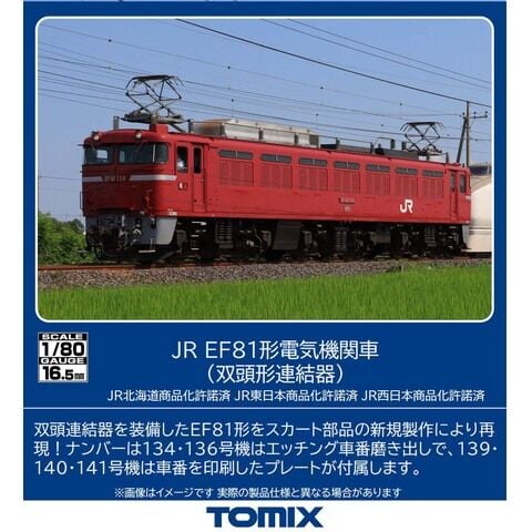 トミックスの完成品HOゲージ車両、JR EF81形電気機関車(双頭形連結器)(1両)です。