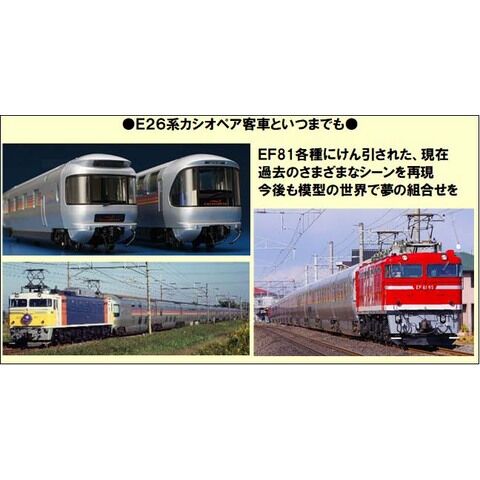 国鉄後期に登場する欧風客車スーパーエクスプレスレインボーの専用機になった95号機は、チェリーレッドの側面に大きな「EF81」の文字ロゴが入った姿となり、客車引退後もその奇抜な姿を維持したまま「北斗星」や「あけぼの」近年では「カシオペアクルーズ・紀行」のけん引でも活躍しています。