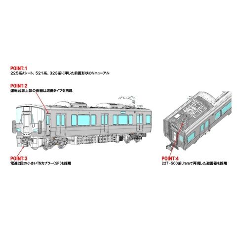 トミックスの完成品Nゲージ車両、JR 227系近郊電車(Red Wing・2両)増結セットです。