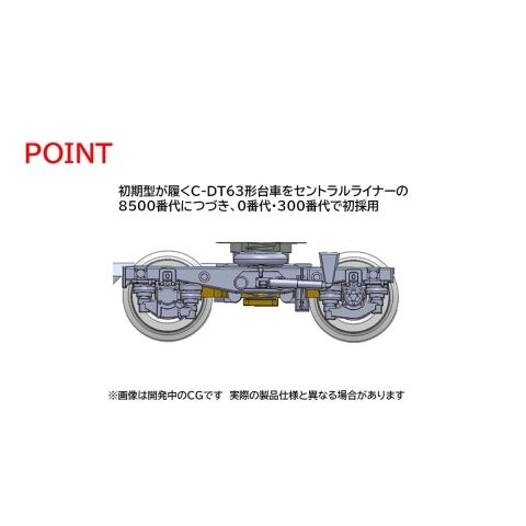 車内はクロスシートを再現 車体は2種類のシルバーで再現 台車は後期型とは異なるC-DT63形台車を装備 車番は選択式で転写シート付属 前面表示部は交換式で印刷済みパーツ装着済み、交換用パーツ付属 ヘッド・テールライト、前面表示部は常点灯基板装備、ON-OFFスイッチ付 ヘッド・テールライト、前面表示部は電球色LEDによる点灯 先頭車運転台側はTNカプラー(SP)装備 新集電システム、銀色車輪採用