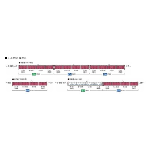 [●クハ401(奇数車)]+[●モハ401(T)]+[●モハ400]+[●クハ401(偶数車)]+[〇クハ401(奇数車)]+[〇モハ401(M)]+[〇モハ400]+[〇クハ401(偶数車)]