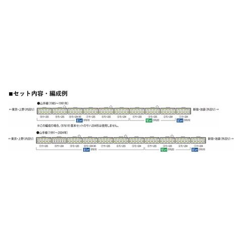 トミックスの完成品Nゲージ車両、JR 205系通勤電車(山手線・2次車)基本セット(8両)です。