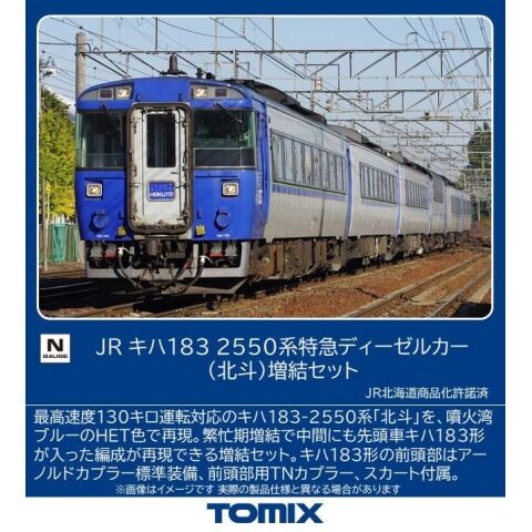 トミックスの完成品Nゲージ車両、JR キハ183 2550系特急ディーゼルカー(北斗)増結セットです。