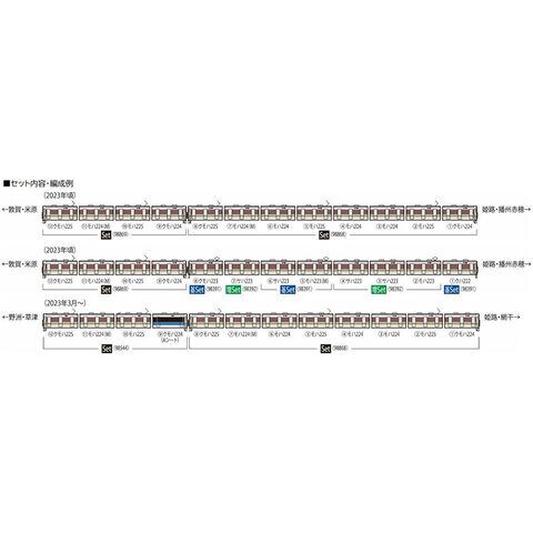 [ ●クモハ225 ] + [ ●モハ224(M) ] + [ ●モハ225 ] + [ ●クモハ224 ] + [ 〇クモハ225 ] + [ 〇モハ224(M) ] + [ 〇モハ224 ] + [ 〇モハ225 ] + [ 〇モハ224 ] + [ 〇モハ224 ] + [ 〇モハ225 ] + [ 〇クモハ224 ]