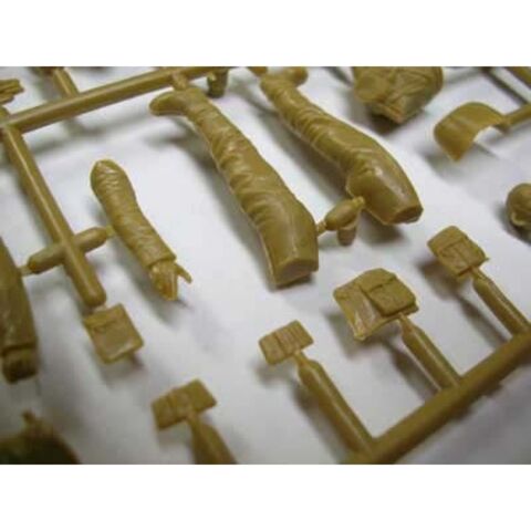 装備品にもベルトに挟んだスコップや手榴弾、カバーをかけたヘルメットなど細かい演出が光ります。