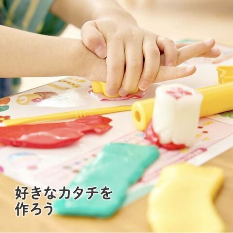 放置してもかたくなりにくいシリコン素材のねんどです。乾かないので繰り返し遊べます。