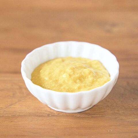 お湯を入れてとろみが出るまで混ぜるだけで、簡単にとうもろこしペーストのできあがり。