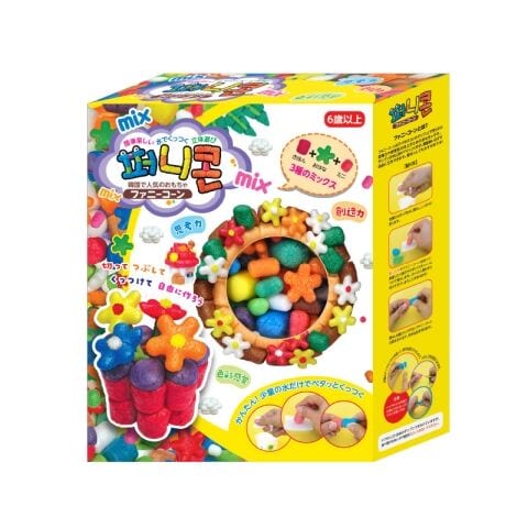 パッケージサイズ : W175×H255×D175(mm) 対象年齢 : 6歳~ 材質 : ファニーコーン(コーンスターチ、顔料)、ナイフ(ポリエチレン)、スポンジ(ポリエステル、綿)、おあそびマット(紙)