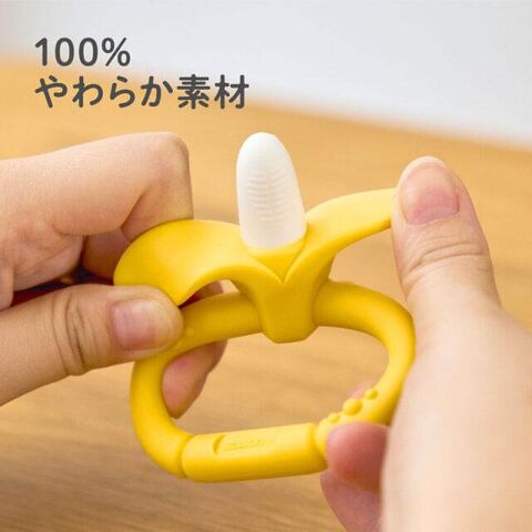 お子様が両手持ちしやすい大きなリングと、のど突き防止のバナナの皮の形状で安心してご使用いただけます。
